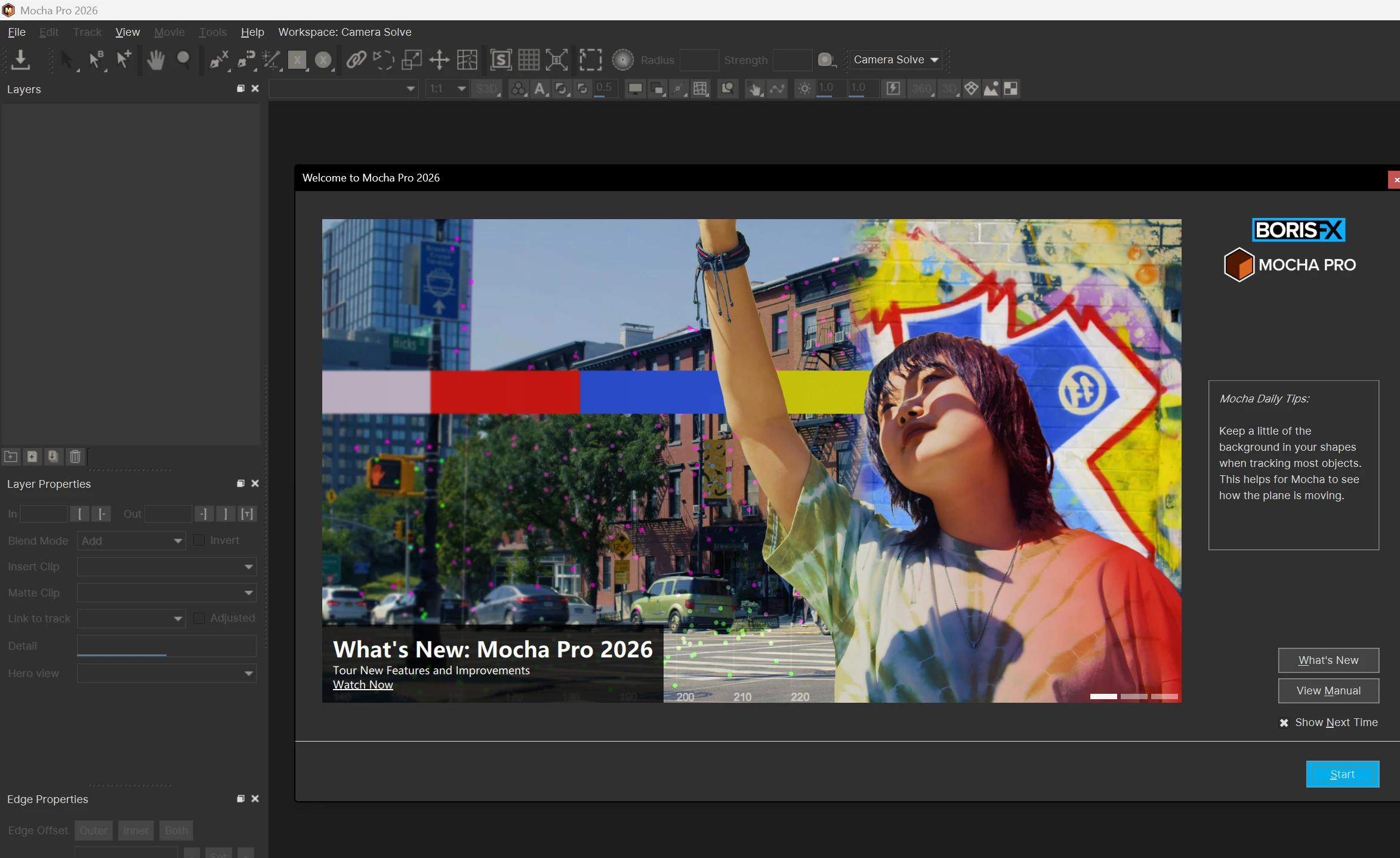 Mocha Pro 是一款世界知名的软件和插件,用于平面运动跟踪、3D 跟踪、抠像、物体移除、图像稳定和 PowerMesh 有机变形跟踪。